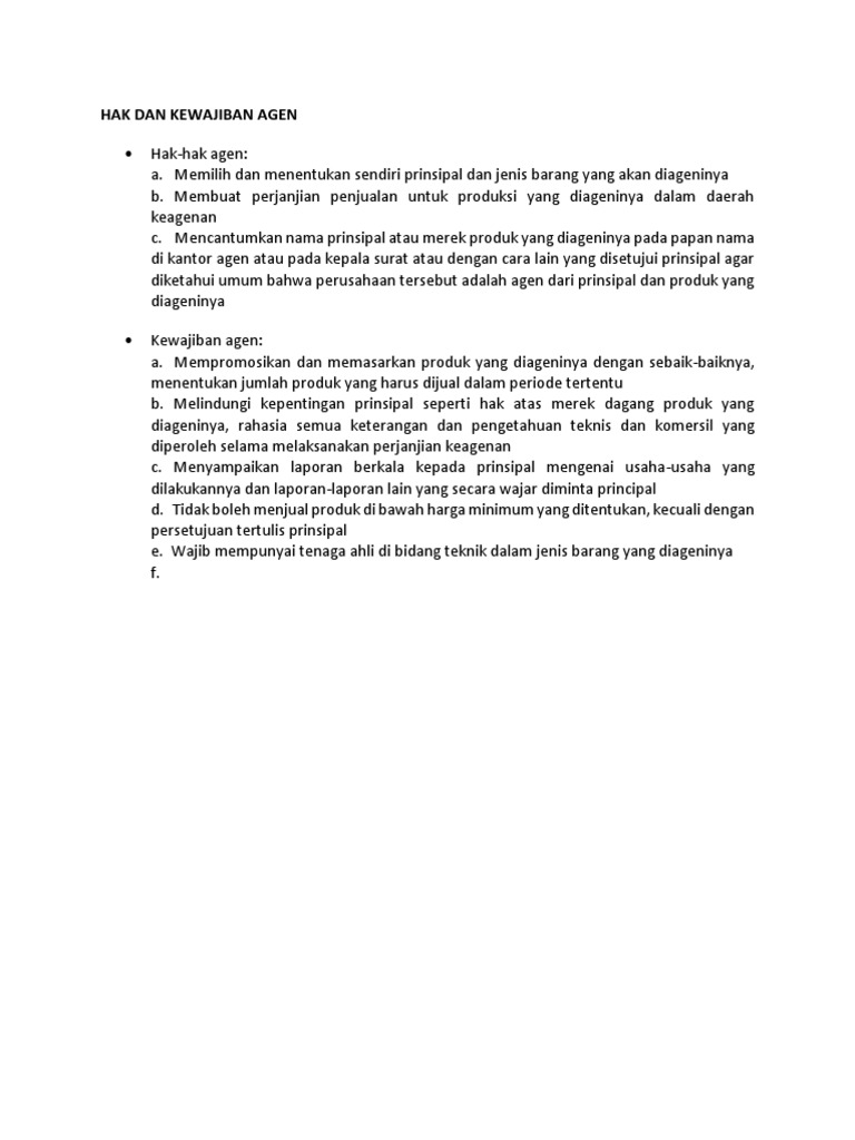 Operasional menentukan kualitas input yang dibutuhkan. Agen adalah perusahaan atau lembaga yang bertindak sebagai perantara untuk dan atas nama prinsipal (perorangan atau badan usaha yang berbentuk badan hukum) berdasarkan perjanjian untuk melakukan pemasaran tanpa melakukan pemindahan hak atas fisik barang dan/jasa yang dimiliki/dikuasai oleh prinsipal yang menunjuknya. Dari wikipedia bahasa indonesia, ensiklopedia bebas. Akan tetapi, dalam seni jual beli, pembeli atau konsumen dapat menawar harga tersebut. Untuk lebih jelasnya mari simak pembahasannya secara lengkap di bawah ini.